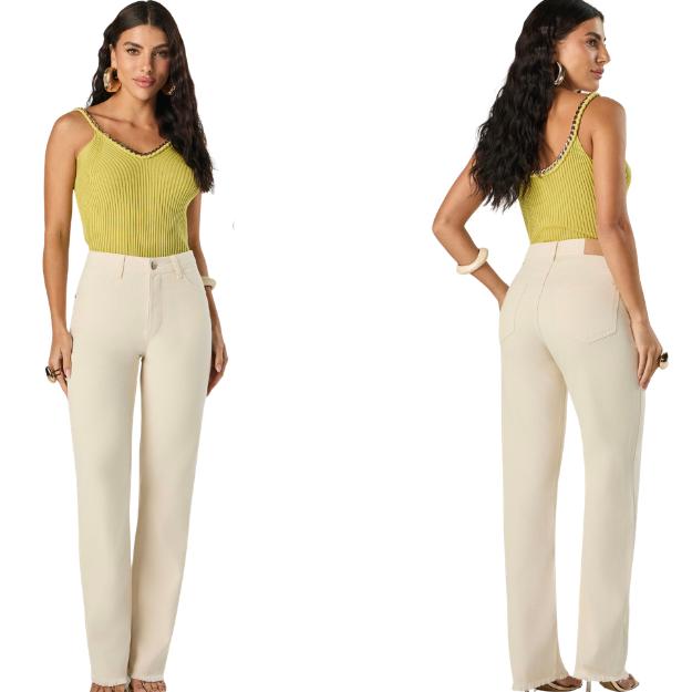 A calça jeans feminina Corte Reto | OUZZARE é confeccionada em mix de fibras, na modelagem reta, cós alto, possui cós com zíper e botão, bolsos frontais e posteriores. Sinônimos de praticidade e são itens básicos que possibilitam muitas combinações.
