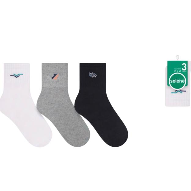 Kit meia masculina 3 pares cano medio| Selene Maior conforto para prática esportiva e dia a dia com liberdade de movimentos.